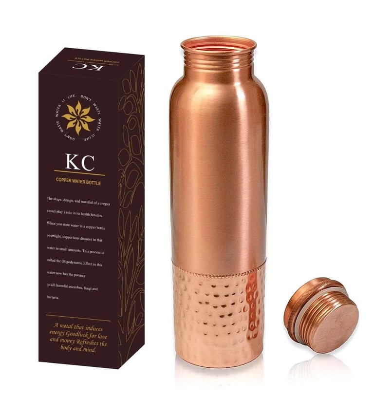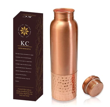 KC Pure Copper Water Bottle with Leak Proof Protection, Ayurveda and Yoga Health Benefits. (Half Hammered Design,1000ml)