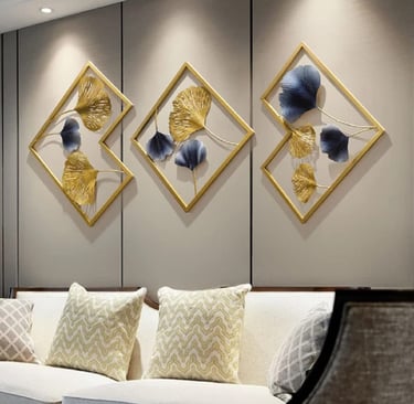 Design World Wall Art For Home Décor | Metal Wall Art Décor For Living Room | Wall Sculptures For Dining Hall | Hanging Decoration Items For Bedroom Office Hallway Hotel Restaurant Ginko Leaf