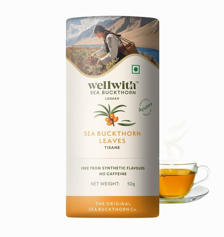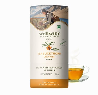 Wellwith by Ayuzera Sea Buckthorn Raw Leaves Tea, Good For Skin and Immunity, For a Healthy Lifestyle - Himalayan Seabuckthorn Herbal Leaf Tea - Pure & Natural (50g)