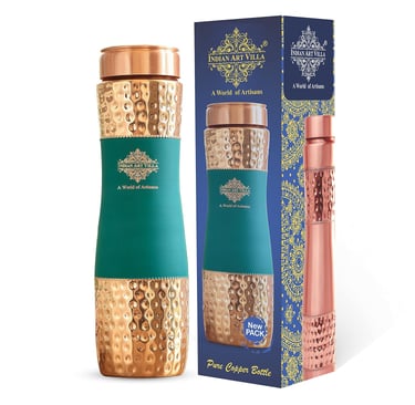 INDIAN ART VILLA Copper Green Ombre Silk Finish Bottle, 1000 ML, Ayurvedic Health Benefits, Ideal for Home, Office, Gym, Yoga & Travel, Elegant Water Bottle for Daily Hydration & Gifting