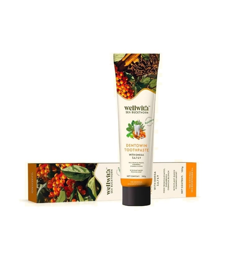 Wellwith by Ayuzera DentoWin Ayurvedic Herbal Gum Care Toothpaste with Himalayan Sea Buckthorn Berry, Tulsi & Neem, Teeth Whitening - Natural Formula, No Fluoride