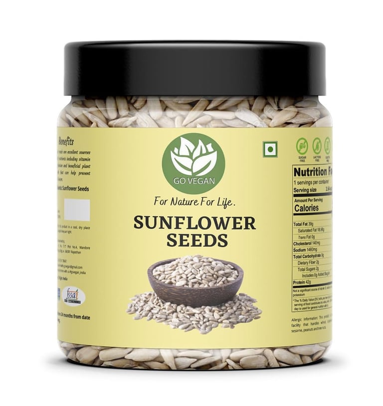 Go Vegan Sunflower Seeds 1kg - Raw Sunflower Seeds for Eating | Diet Food | Healthy Snack | Raw seeds | Weight management [jar pack ]