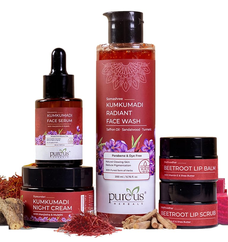Kumkumadi Skin Care Combo Kit | Kumkumadi Face Wash + Face Serum + Night Cream + Beetroot Lip Balm & Lip Scrub | Complete Combo Kit for Glowing Skin & Anti Aging, Anti Pigmentation for Women & Men