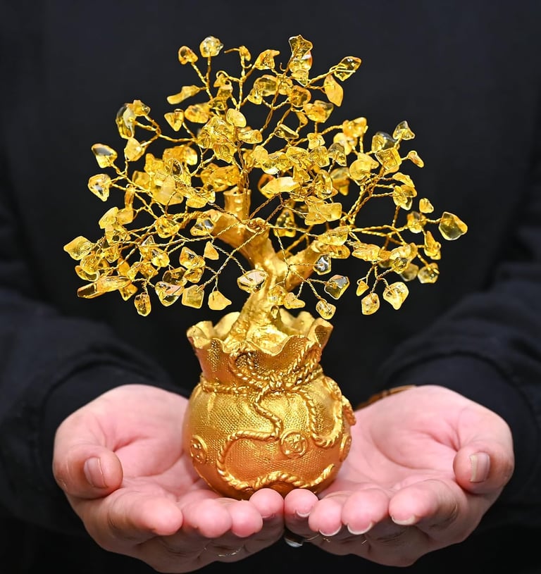 ZAICUS Lucky Feng Shui Citrine Tree, Crystal Tree of Life, Bonsai Money Tree, Gold Crystal Ornaments, Healing Gemstone Tree for Prosperity, Positive Energy, Good Luck Gift (7 x 3 inch)