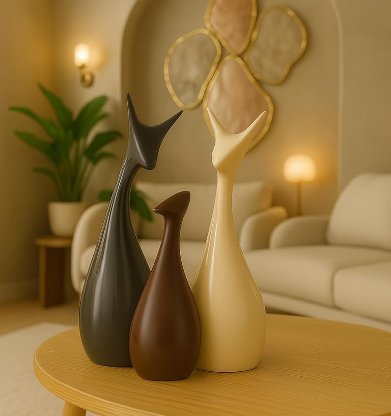 Xtore® Home Decor Lucky Deer Family Matte Finish Ceramic Figures - (Set of 3, Matte Brown)