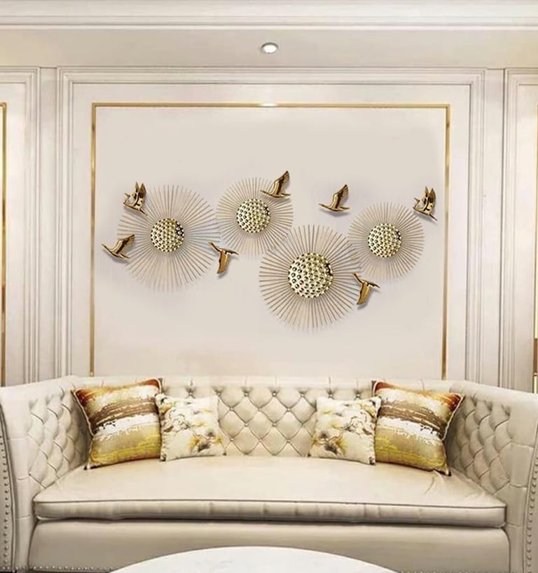 ZOVE Metal Modern Wall Art With Flying Birds For Home Decoration Perfect For Living Room/Hotel/Restaurant/Bedroom (Color : Golden) (Size: 90 X 26 Inch)
