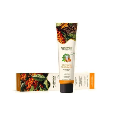 Wellwith by Ayuzera DentoWin Ayurvedic Herbal Gum Care Toothpaste with Himalayan Sea Buckthorn Berry, Tulsi & Neem, Teeth Whitening - Natural Formula, No Fluoride