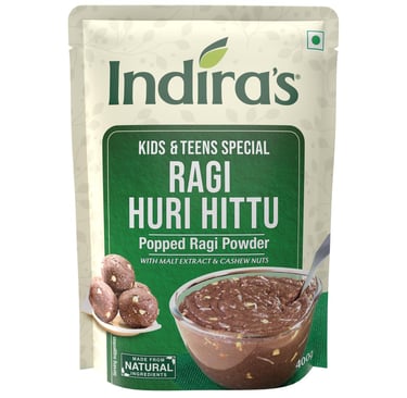 Indira's Ragi Huri Hittu - Teens & Kids Special (400g), Popped Ragi-Finger Millet Flour with Cashew Nuts, Malt, Spices, Malt Mix, Instant,Porridge Mix, Instant Laddu Mix