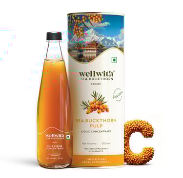 Wellwith by Ayuzera Vitamin C Himalayan Sea Buckthorn Pulp Juice 300ml | Rich in Vitamin C, Antioxidants, Liquid Supplements | Makes up to 50 Glass Juice…