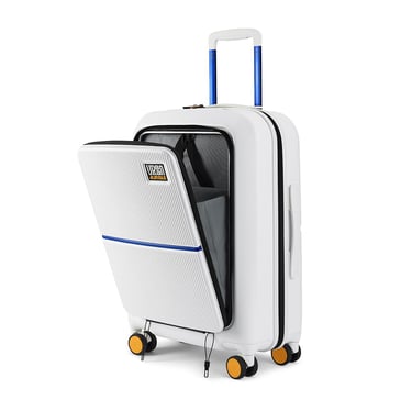 Urban Jungle by Safari, Cabin Trolley Bag with Laptop Compartment, Hardside Polycarbonate Small (55 Cm) Suitcase with USB Charging Socket, 8 Silent Wheel Luggage for Both Men & Women (Frost White)
