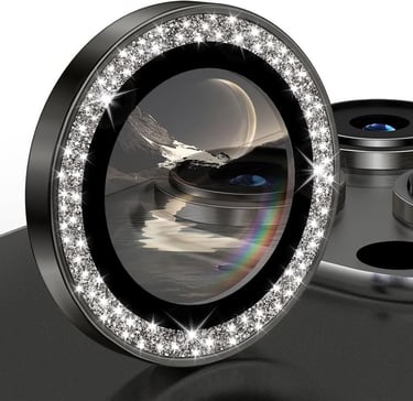Camera Lens Protection Ring Compatible with iPhone 15 Pro/iPhone 15 Pro Max, Luxury Diamond Design Camera Lens Protector, Scratch Resistant, Anti-Fingerprint, Case Friendly Cover Black