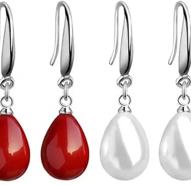 Nilu's Collection Women's Pearl Drop Earrings, Silver Plated Round Pearl Dangle and Drop Earrings