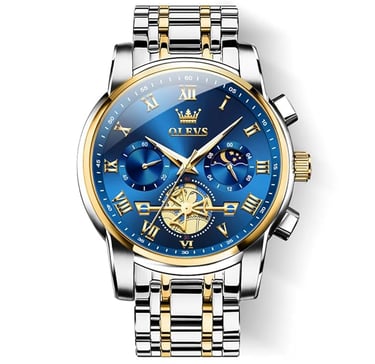 OLEVS chronograph Men's Stainless Steel Watch (Blue Dial Silver Colored Strap)