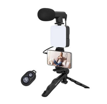 Amazon Basics 6-in-1 Vlogging Kit for All Phones | Tripod, LED Video Light, Cardioid Microphone, Phone Clip, Bluetooth Remote & Microphone Cable | Useful for Live Broadcasting, Video Calling