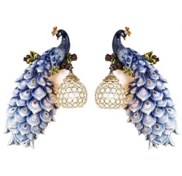 Home Decoration European Peacock Wall Lamp Crystal Luxury Living Room Creative Personality Art for Livingroom, Bedroom and Kidsroom