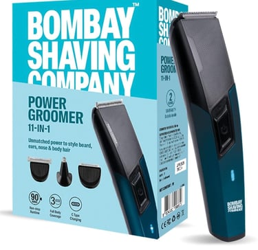 Bombay Shaving Company 11 In 1 Trimmer Men|All In One Full Body Trimmer|90 Min Charge Time|90 Mins Run Time|Hair, Ear, Beard, Body, Nose Trimme|Type C Charging|Power Groomer (New Model),Blue
