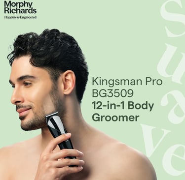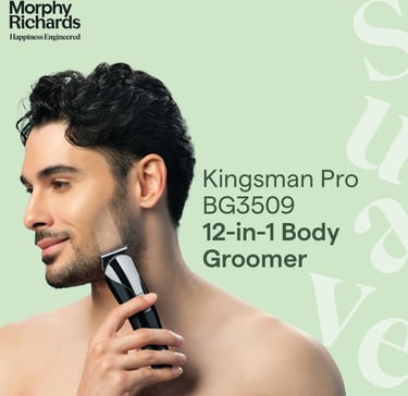 Morphy Richards Kingsman Pro 12-In-1 Grooming Kit For Men| Rechargeable All In One Men Trimmer|5 Face Nose Ear Hair Blades| Nose&Ear Trimmers| Private Part Shaving Body GroomersI2-Yr Warranty,Black