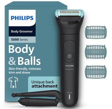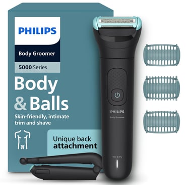 Philips Body Trimmer for Men Private Parts, Removes Back Hair, Skin Safe Grooming, Clinically Tested for Sensitive Skin, 100 Min Runtime, Showerproof, 5 Year Warranty, BG5475/15