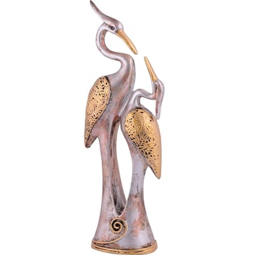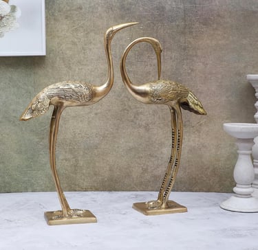 Two Moustaches Love Cranes Pair Brass Flamingo Showpiece Pair (Bending Crane : 9 x 3.5 x 16 Inches, Upright Crane : 11 x 3.5 x 17 Inches) (Antique White) (Set of 1)