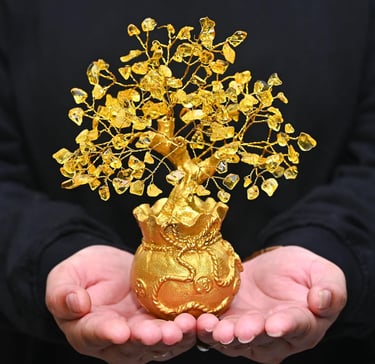 ZAICUS Lucky Feng Shui Citrine Tree, Crystal Tree of Life, Bonsai Money Tree, Gold Crystal Ornaments, Healing Gemstone Tree for Prosperity, Positive Energy, Good Luck Gift (7 x 3 inch)