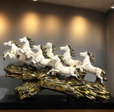 UAG Exports Golden 19 Inch 7 Running Victory Horses Resin Statue Vastu Feng Shui Showpiece for Living Room, Home Decor, Office, Housewarming, Anniversary, Birthday Gift