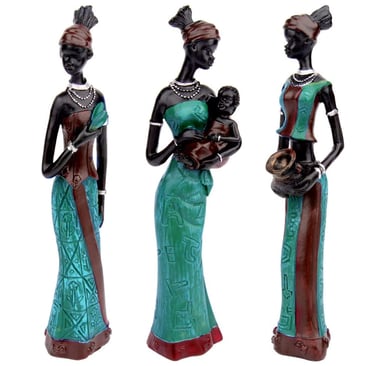 LIFEHAXTORE Resin Beautiful Finish Uniquely Hand Crafted Home Dcor African Tribal Women Art Piece (Set of 3, Green and Black Color)