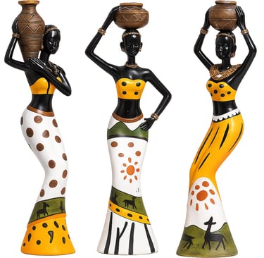 Xtore Beautiful Finish Uniquely Hand Crafted Home Dcor African Tribal Women Art Piece - (Set of 3, Multicolour), Resin