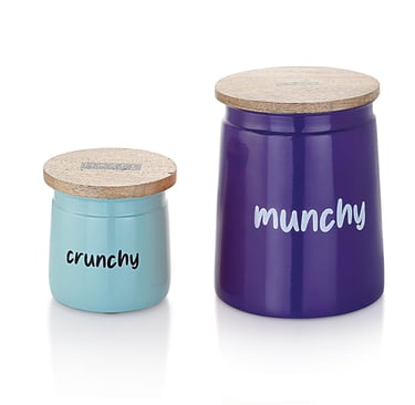 HAZEL Kitchen Containers set of 2 for Snacks | Munchy & Crunchy Snacks Jars Set with Lid, Purple & Teal, 2350 ML, 225 ML