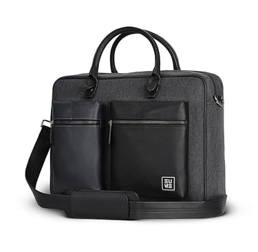 EUME Attache Laptop Bag for Men | Office Bag for Men & Women | With Padded Compartment | Vegan Leather & Nylon Fabric | Fits Up to 15.6" Laptop, 18L