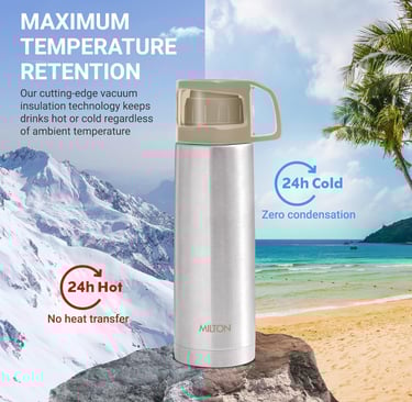Milton Glassy 1000 Thermosteel Vacuum Insulated Double Walled Flask with Drinking Cup lid & Jacket, 1000 ml Water Bottles,24 Hours Hot & Cold,Easy to Carry,Rust Proof, Tea, Coffee,Travel Bottle,Grey