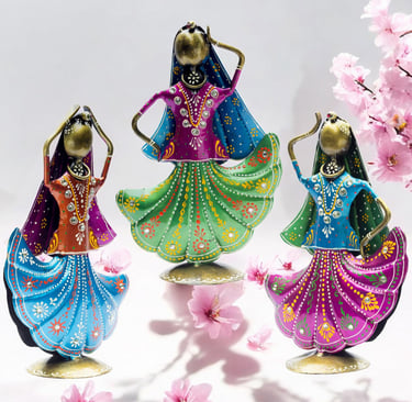Set of 3 Metal Figurine Dancers Home Decor Item for Living Room, Bedroom, Wedding Festive Housewarming Gift Showpiece Rajasthani Dancing Dolls