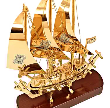 INDIAN ART VILLA Brass Ship with Wooden Base, Showpiece Item, Perfect for Home Decoration and Gifting, 12'’ Inch
