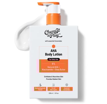 Chemist At Play AHA Body Lotion with 5% Natural AHA, Niacinamide, Shea Butter | For Exfoliating Dry & Dead Skin Cells, Deep Nourishment & Radiant Skin | Skin Brightening Lotion | 236ml