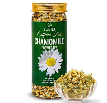 BLUE TEA - Chamomile Tea - 30 g - 50+ Cups | SLEEP & RELAXATION | Herbal Tea - Caffeine Free - Flower Based - Non-Bitter | Reusable Pet Jar