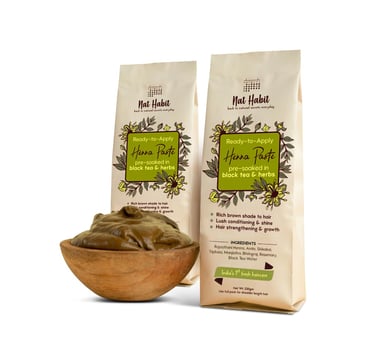 Nat Habit - Fresh Ready To Apply Henna Paste, Pre-Soaked in Black Tea and Herbs,100% Natural Rajasthani Henna, Imparts Rich Brown Shade (Pack of 2 x 220g)