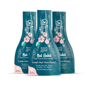 Nat Habit Five Oil Hibiscus Nutrimask - Hair Mask For Hair Growth, Conditioning, Smoothening, Dry & Frizzy Hair Enriched With Hibiscus Flowers, Hibiscus, Neem, Curry Leaves (Pack Of 3 X 40Grams)