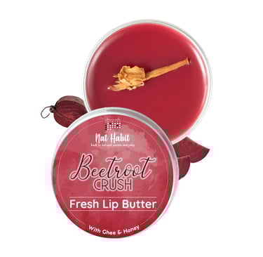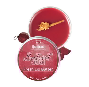 Nat Habit Lip Balm Fresh Beetroot Crush 10gm Lip Butter With Desi Ghee & Raw Honey For Natural Pink Lips, Nourishment, Dark And Chapped Lips - (Pack of 1)
