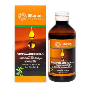 Sitaram Ayurveda Saraswatharishtam With Gold 200ml syrup| Kerala Ayurvedic Saraswatarishta Supplement With Brahmi And Ashwagandha.