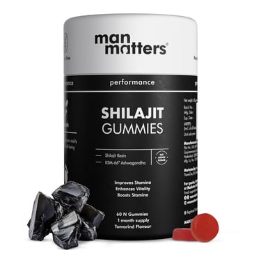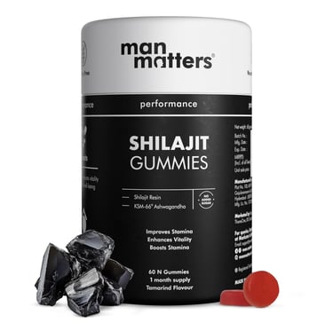Man Matters Pure Himalayan Shilajit/Shilajeet Gummies with 75% Fulvic Acid & KSM 66 Ashwagandha | Boosts Stamina, Strength & Improves Energy Levels | No Added Sugar | Pack of 60