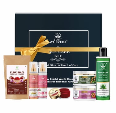 Face Care Kit | Ayurvedic Skincare Gift Box with Aloe Vera Face Wash, Kumkumadi Face Pack, Niacinamide Serum, Glowner Toner, Saffron Papaya Cream, Night Cream & Lip Balm | Natural Glow Combo | Diwali, Birthday, Anniversary & Festival Gift Hamper (Pack-7) 560g