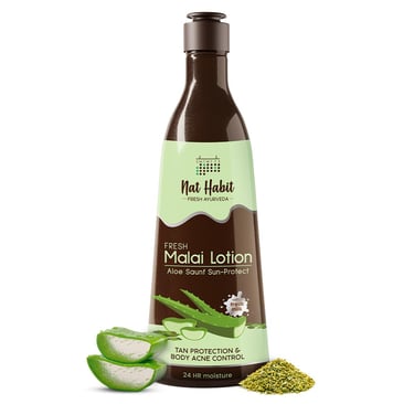 Nat Habit Fresh Whipped Body Lotion, Aloe Saunf Sun Protect Malai Lotion, Detan Hydration, Body Acne Control & 24 Hours Moisture, 250 ml (Pack of 1)