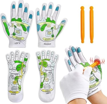 DIVUE Acupressure Reflexology Socks and Gloves Tool Set For Men Women, Hand Spa And Foot Massage Sock with Massage Rod, Hand Clip LI4, Foot Point Complete Illustration