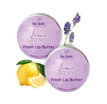 Nat Habit Lemon Lavender Lip Balm Fresh Infused Lip Butter With Desi Ghee & Raw Honey For Lip Lightening, Lip Repair, Dark And Chapped Lips (Pack of 2 X 10gm)